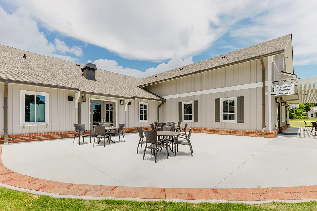 • Pergola and Patio: The 660 sq ft pergola with rocking chairs offers stunning views of the golf course, while the patio and umbrella-covered seating provide a perfect spot to relax with a drink from the bar after 18 holes. The space is accented with tribute bricks, available for purchase, allowing guests to leave a lasting mark on this special setting.